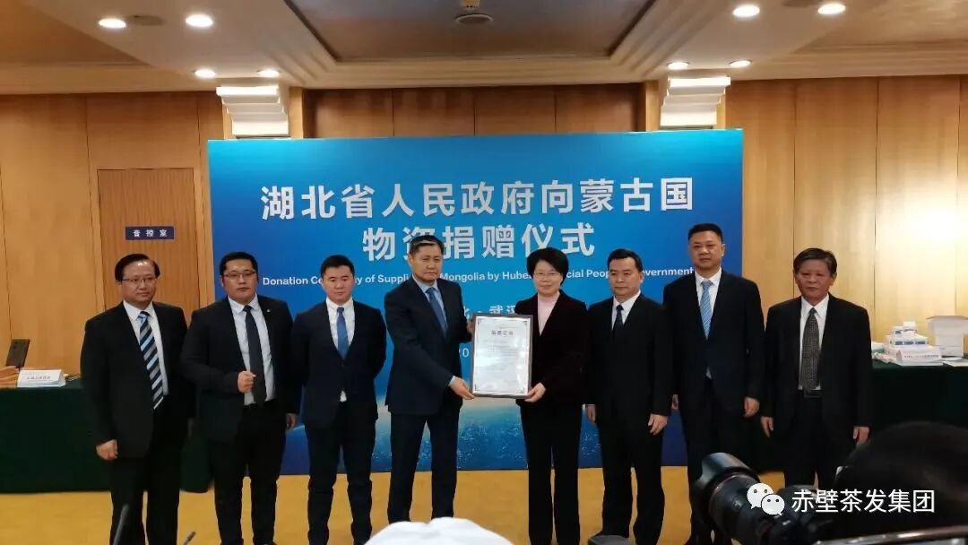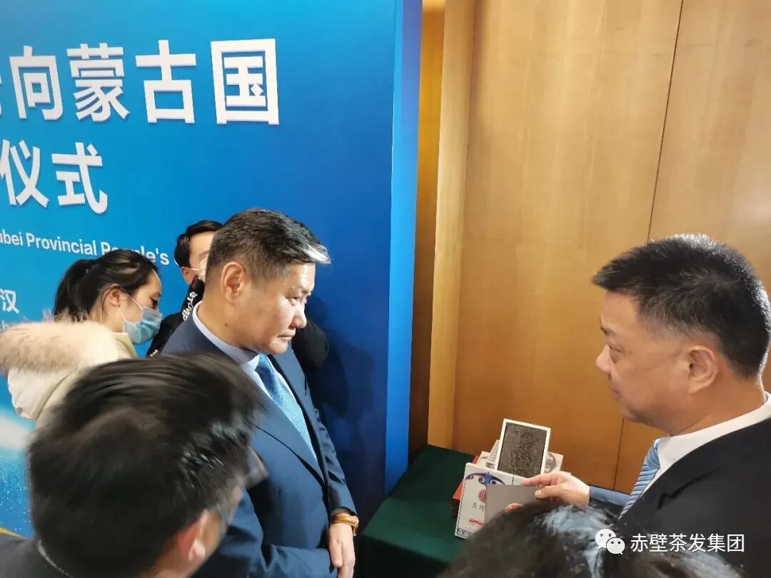 12月8日上午,省政府向蒙古国捐赠物资仪式在武汉举行。1.5万份共3万块赤壁青砖茶将作为捐赠物资之一回赠给蒙古国,以表达对蒙古国政府和人民的感谢。